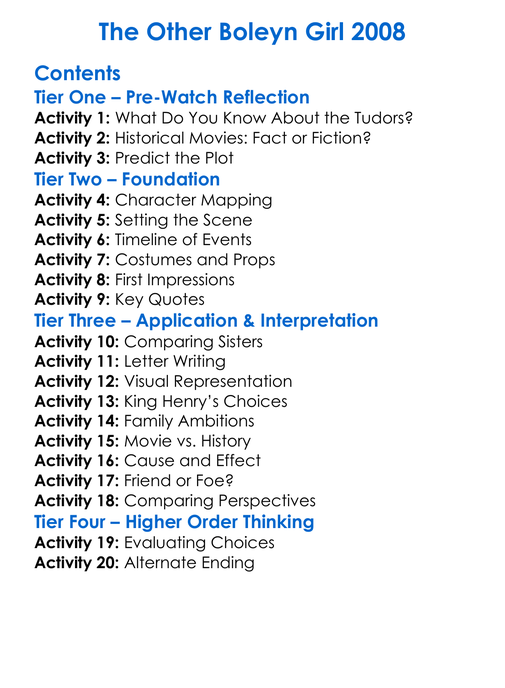 The Other Boleyn Girl 2008 Worksheet Activity Booklet