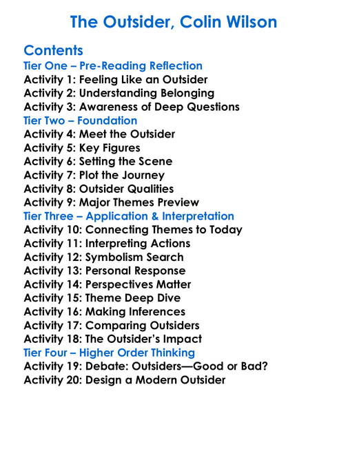 The Outsider Colin Wilson Worksheet Activity Booklet