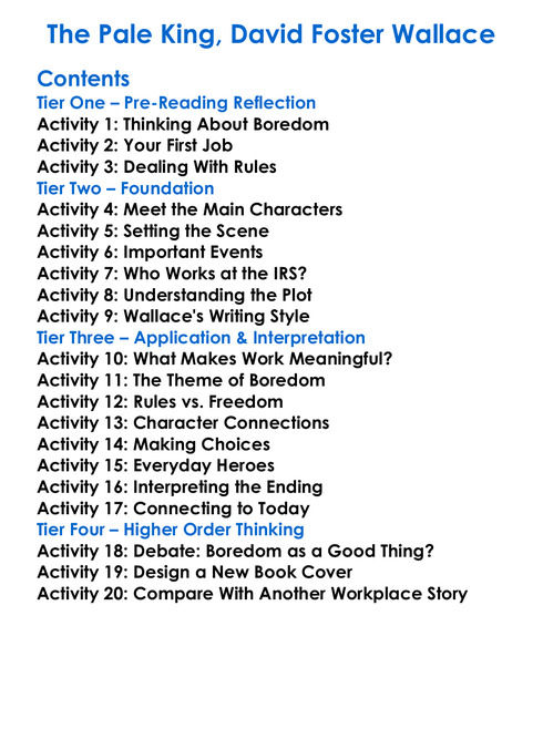 The Pale King David Foster Wallace Worksheet Activity Booklet