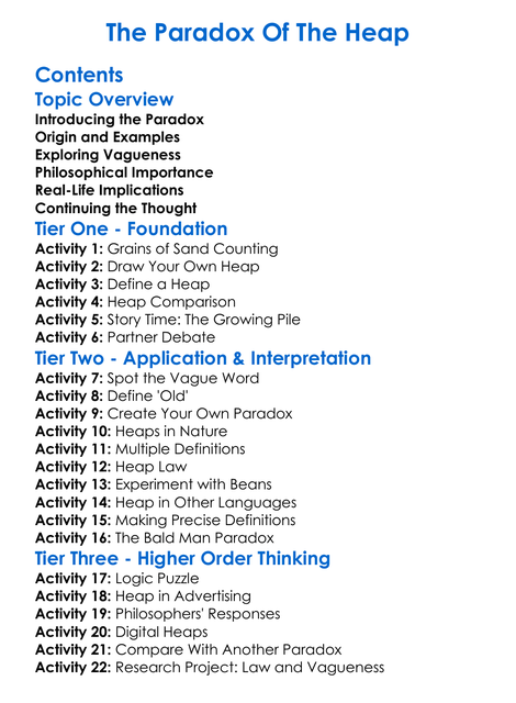 The Paradox Of The Heap Worksheet Activity Booklet