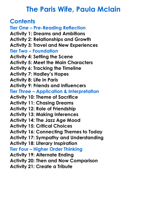 The Paris Wife Paula Mclain Worksheet Activity Booklet