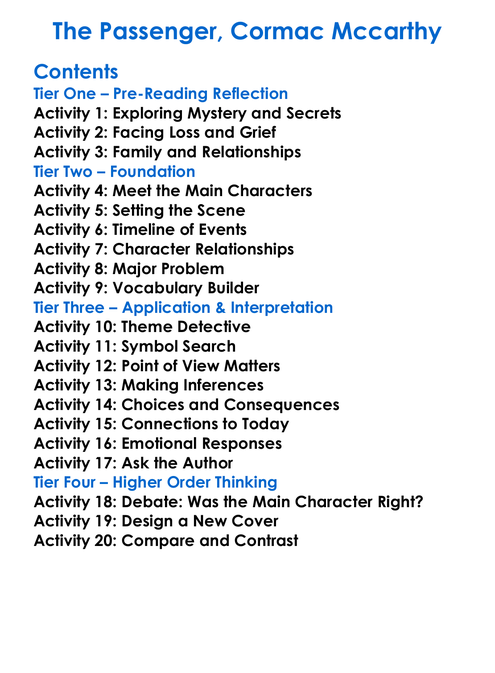 The Passenger Cormac Mccarthy Worksheet Activity Booklet