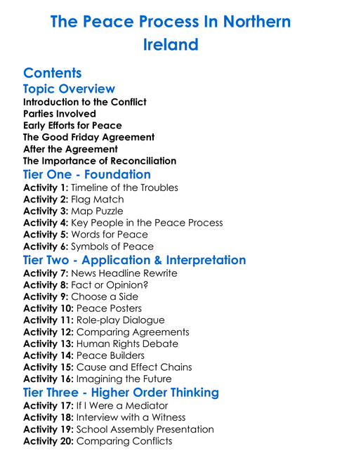The Peace Process In Northern Ireland Worksheet Activity Booklet