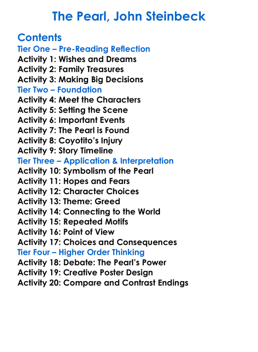 The Pearl John Steinbeck Worksheet Activity Booklet