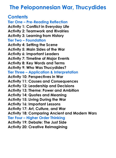 The Peloponnesian War Thucydides Worksheet Activity Booklet