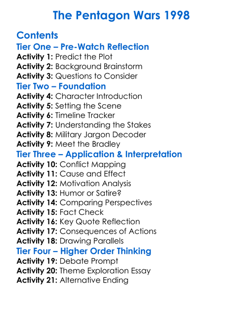 The Pentagon Wars 1998 Worksheet Activity Booklet