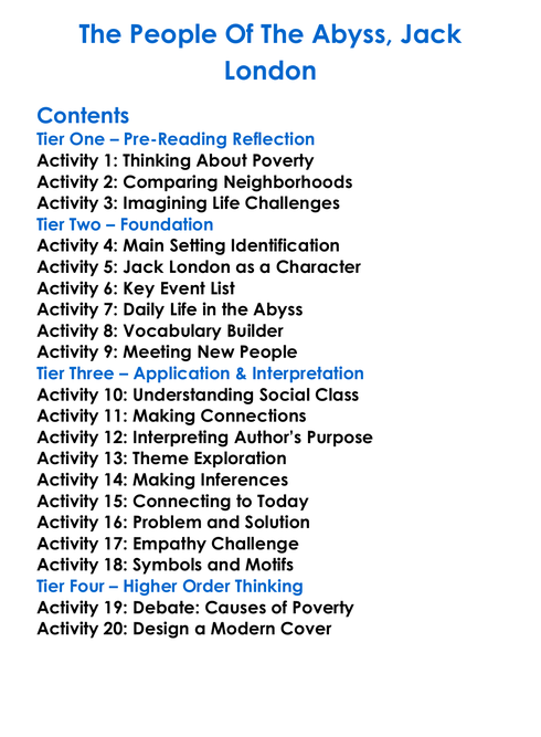 The People Of The Abyss Jack London Worksheet Activity Booklet