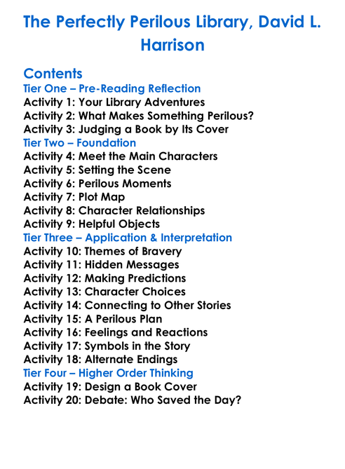 The Perfectly Perilous Library David L Harrison Worksheet Activity Booklet