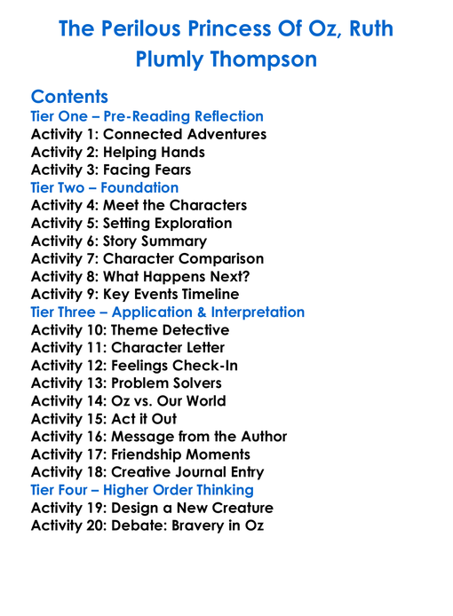 The Perilous Princess Of Oz Ruth Plumly Thompson Worksheet Activity Booklet