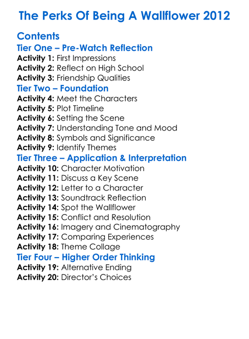 The Perks Of Being A Wallflower 2012 Worksheet Activity Booklet