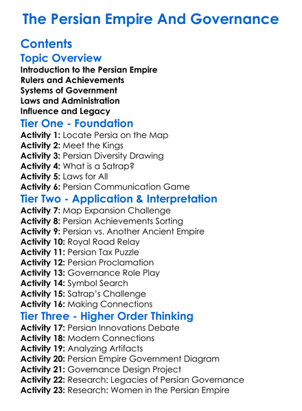 The Persian Empire And Governance Worksheet Activity Booklet