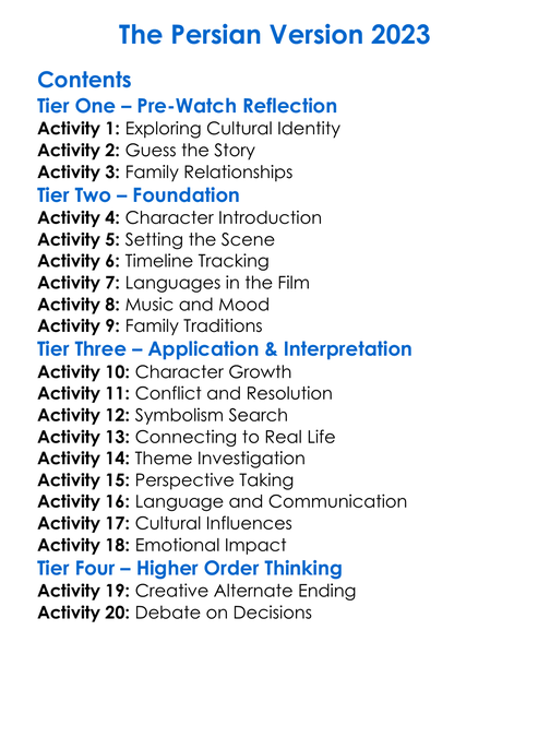 The Persian Version 2023 Worksheet Activity Booklet
