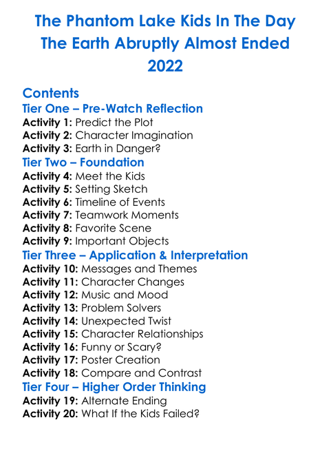 The Phantom Lake Kids In The Day The Earth Abruptly Almost Ended 2022 Worksheet Activity Booklet