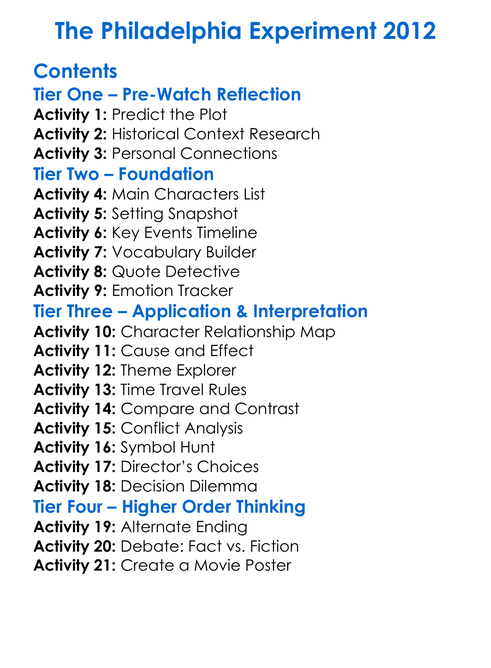 The Philadelphia Experiment 2012 Worksheet Activity Booklet