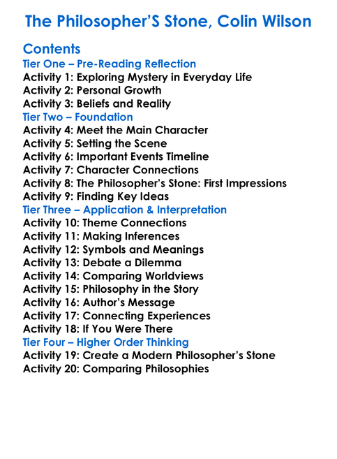 The Philosophers Stone Colin Wilson Worksheet Activity Booklet