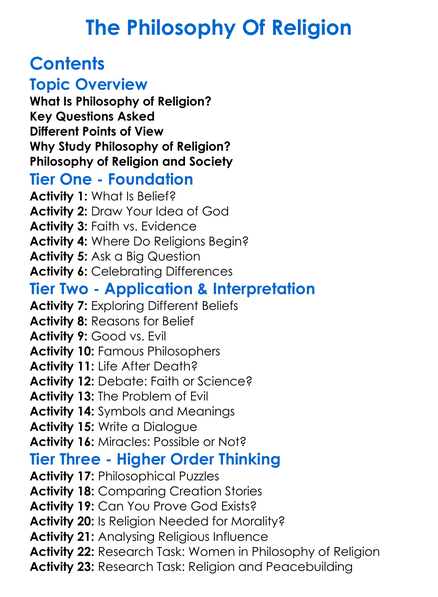 The Philosophy Of Religion Worksheet Activity Booklet