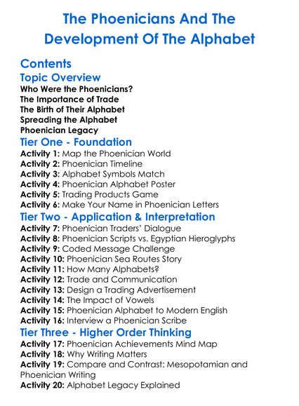 The Phoenicians And The Development Of The Alphabet Worksheet Activity Booklet