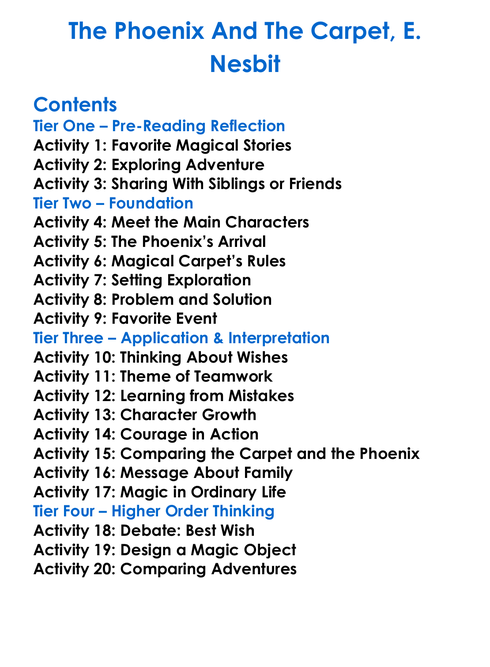 The Phoenix And The Carpet E Nesbit Worksheet Activity Booklet