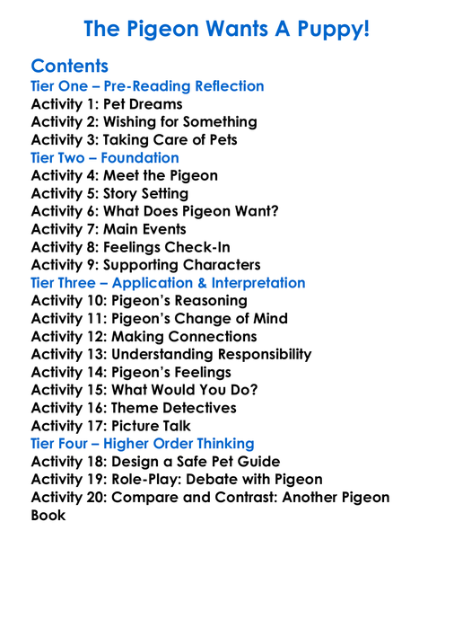 The Pigeon Wants A Puppy Worksheet Activity Booklet