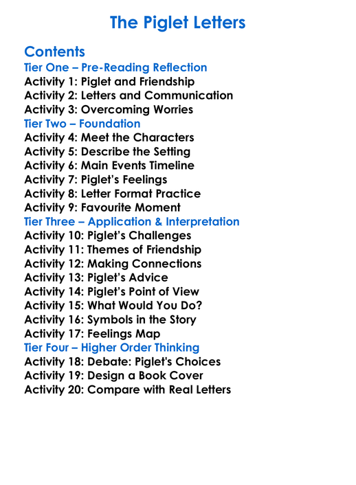 The Piglet Letters Worksheet Activity Booklet