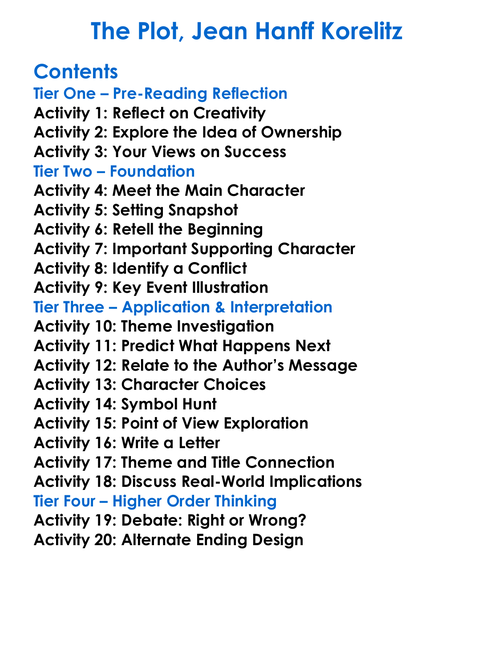 The Plot Jean Hanff Korelitz Worksheet Activity Booklet