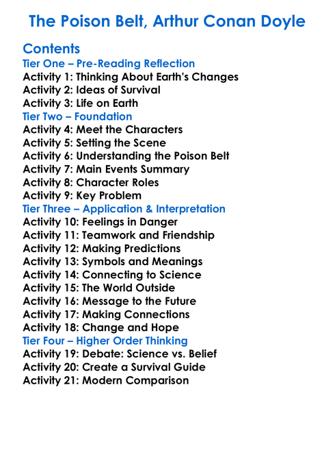 The Poison Belt Arthur Conan Doyle Worksheet Activity Booklet