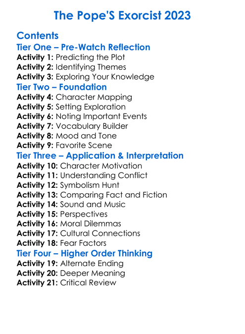 The Popes Exorcist 2023 Worksheet Activity Booklet