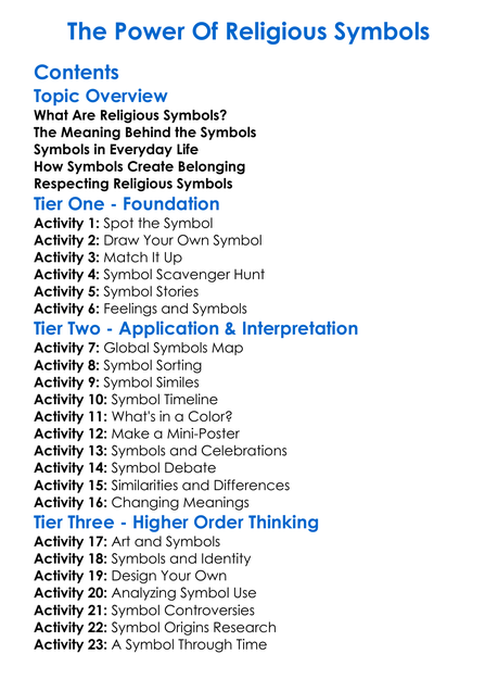 The Power Of Religious Symbols Worksheet Activity Booklet