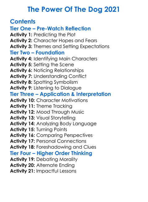 The Power Of The Dog 2021 Worksheet Activity Booklet