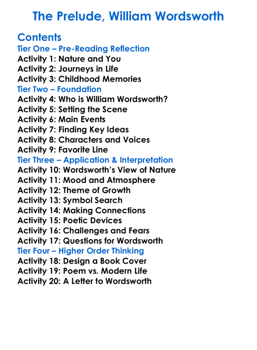 The Prelude William Wordsworth Worksheet Activity Booklet