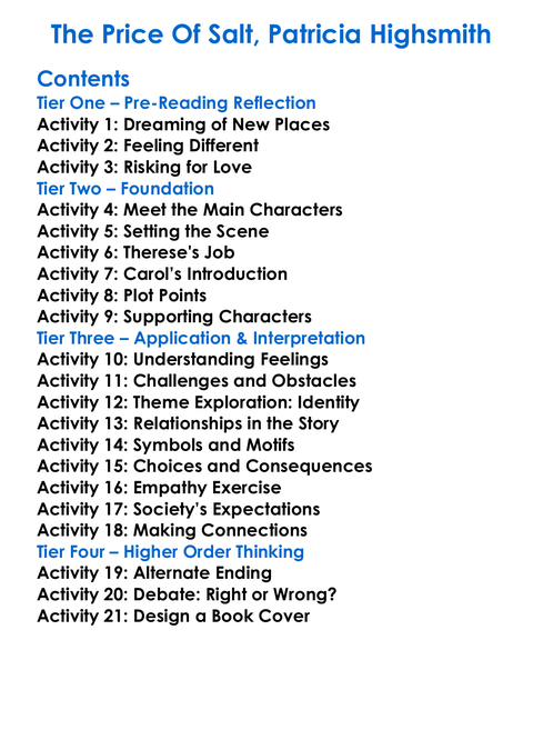 The Price Of Salt Patricia Highsmith Worksheet Activity Booklet