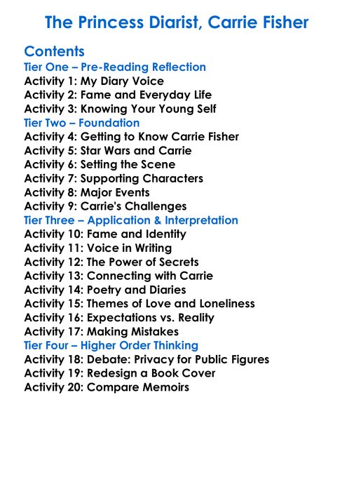 The Princess Diarist Carrie Fisher Worksheet Activity Booklet