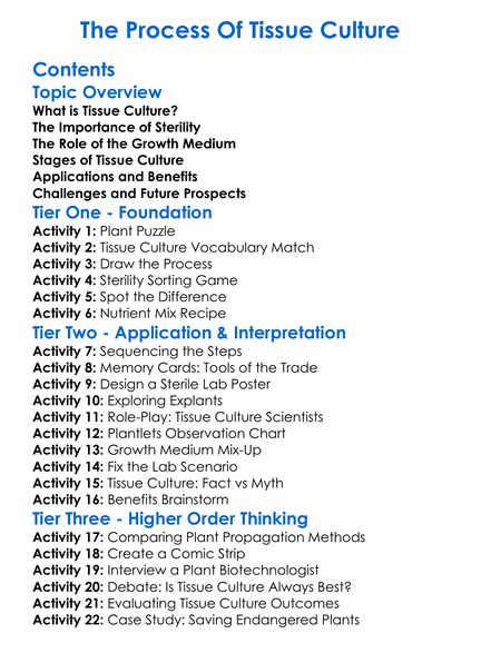The Process Of Tissue Culture Worksheet Activity Booklet