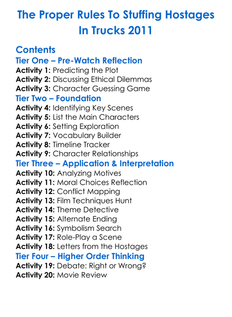 The Proper Rules To Stuffing Hostages In Trucks 2011 Worksheet Activity Booklet