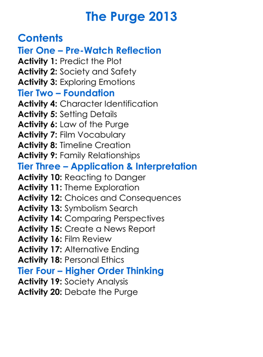 The Purge 2013 Worksheet Activity Booklet