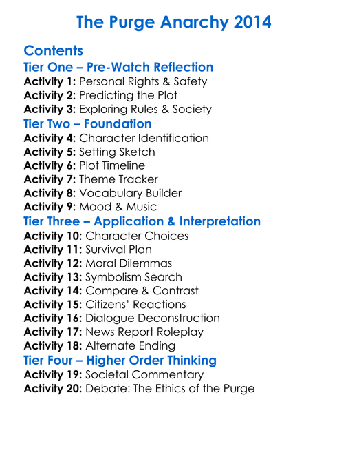 The Purge Anarchy 2014 Worksheet Activity Booklet