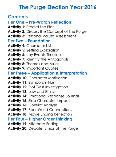 The Purge Election Year 2016 Worksheet Activity Booklet