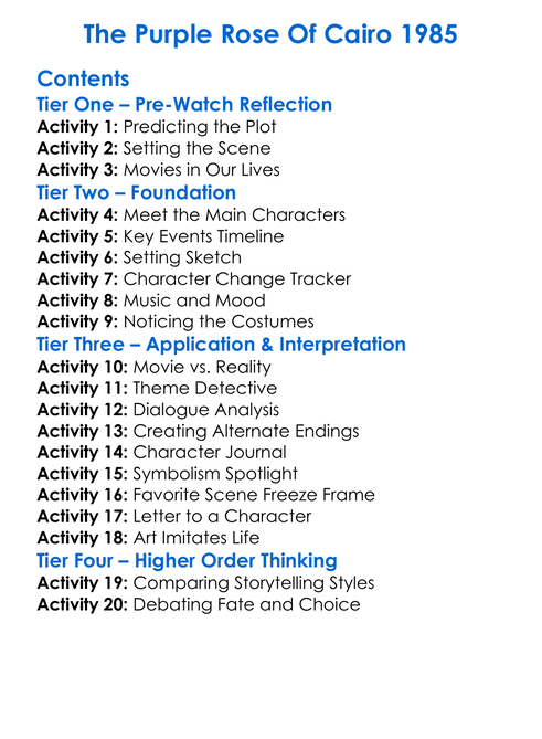 The Purple Rose Of Cairo 1985 Worksheet Activity Booklet