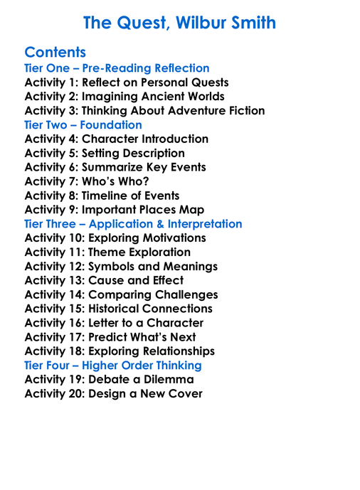 The Quest Wilbur Smith Worksheet Activity Booklet