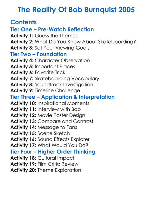 The Reality Of Bob Burnquist 2005 Worksheet Activity Booklet
