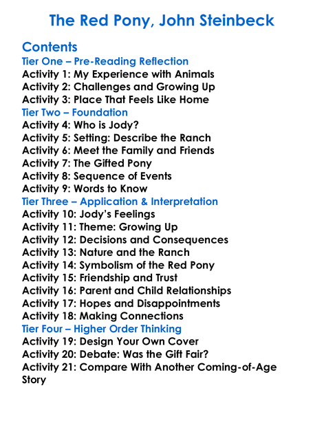 The Red Pony John Steinbeck Worksheet Activity Booklet