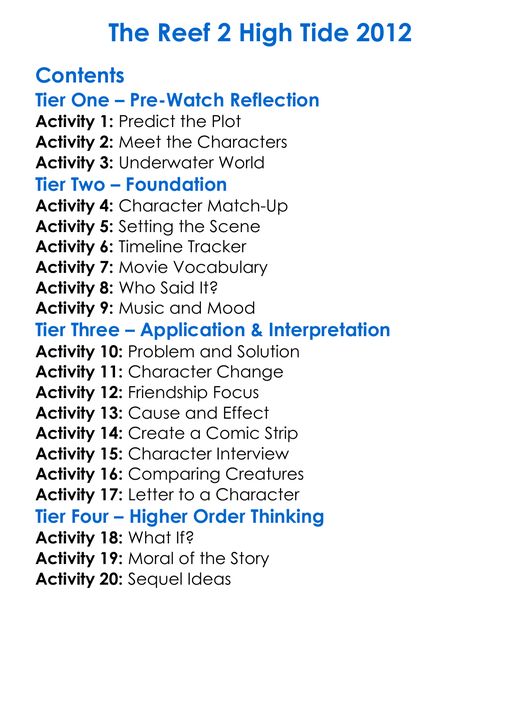 The Reef 2 High Tide 2012 Worksheet Activity Booklet