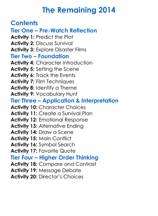 The Remaining 2014 Worksheet Activity Booklet