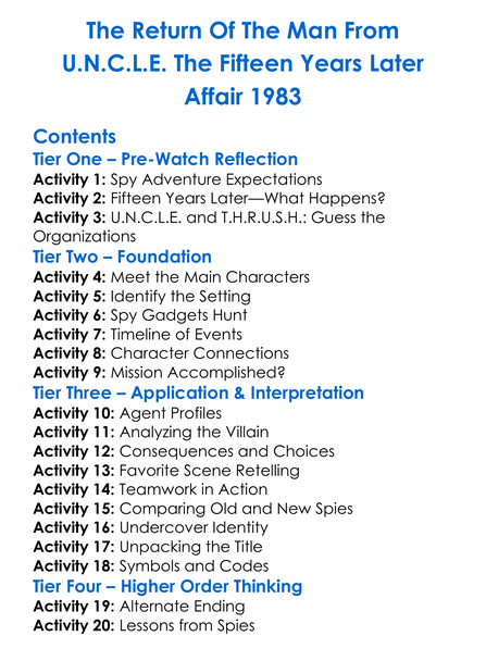 The Return Of The Man From Uncle The Fifteen Years Later Affair 1983 Worksheet Activity Booklet