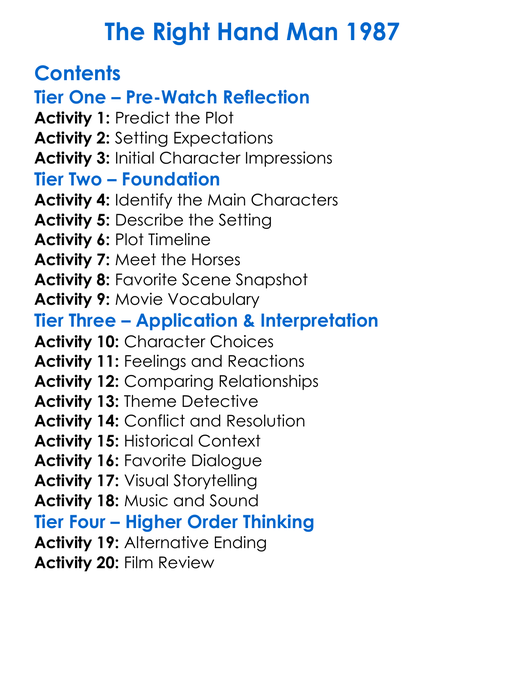 The Right Hand Man 1987 Worksheet Activity Booklet