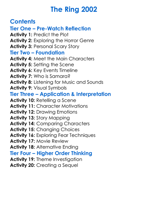 The Ring 2002 Worksheet Activity Booklet