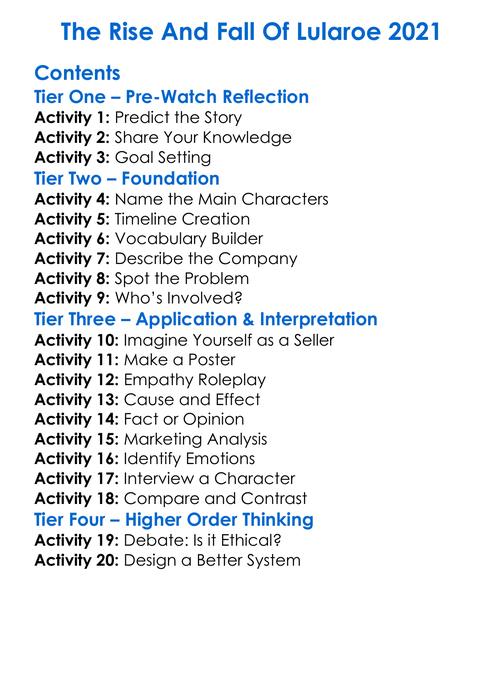 The Rise And Fall Of Lularoe 2021 Worksheet Activity Booklet