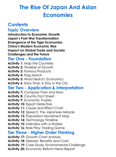 The Rise Of Japan And Asian Economies Worksheet Activity Booklet
