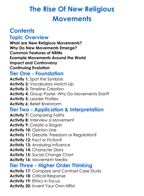 The Rise Of New Religious Movements Worksheet Activity Booklet