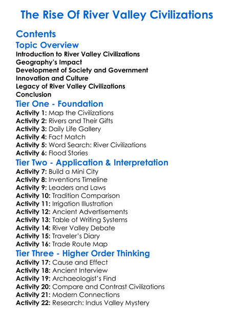 The Rise Of River Valley Civilizations Worksheet Activity Booklet